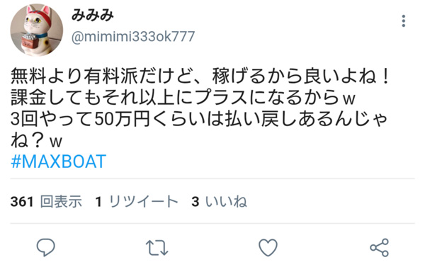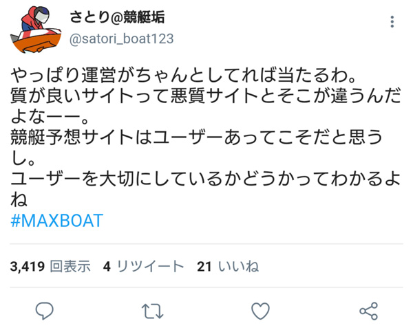 某SNSでもMAX BOATの口コミは豊富だぞ!